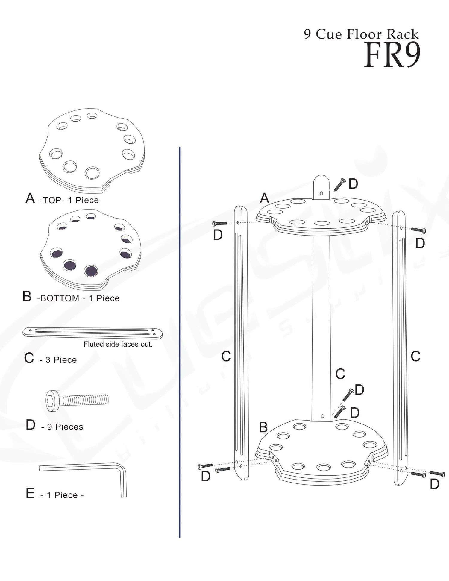 - Floor stand holds 9 cues